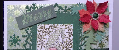 Onderaan nog een paar blaadjes bij de bloemen uitgeponsd met een handpons. Deze zijn ook leuk want daar kan je mee ponsen en embossen. Ik had er een paar gekregen van een vriendin die er klaar mee is!